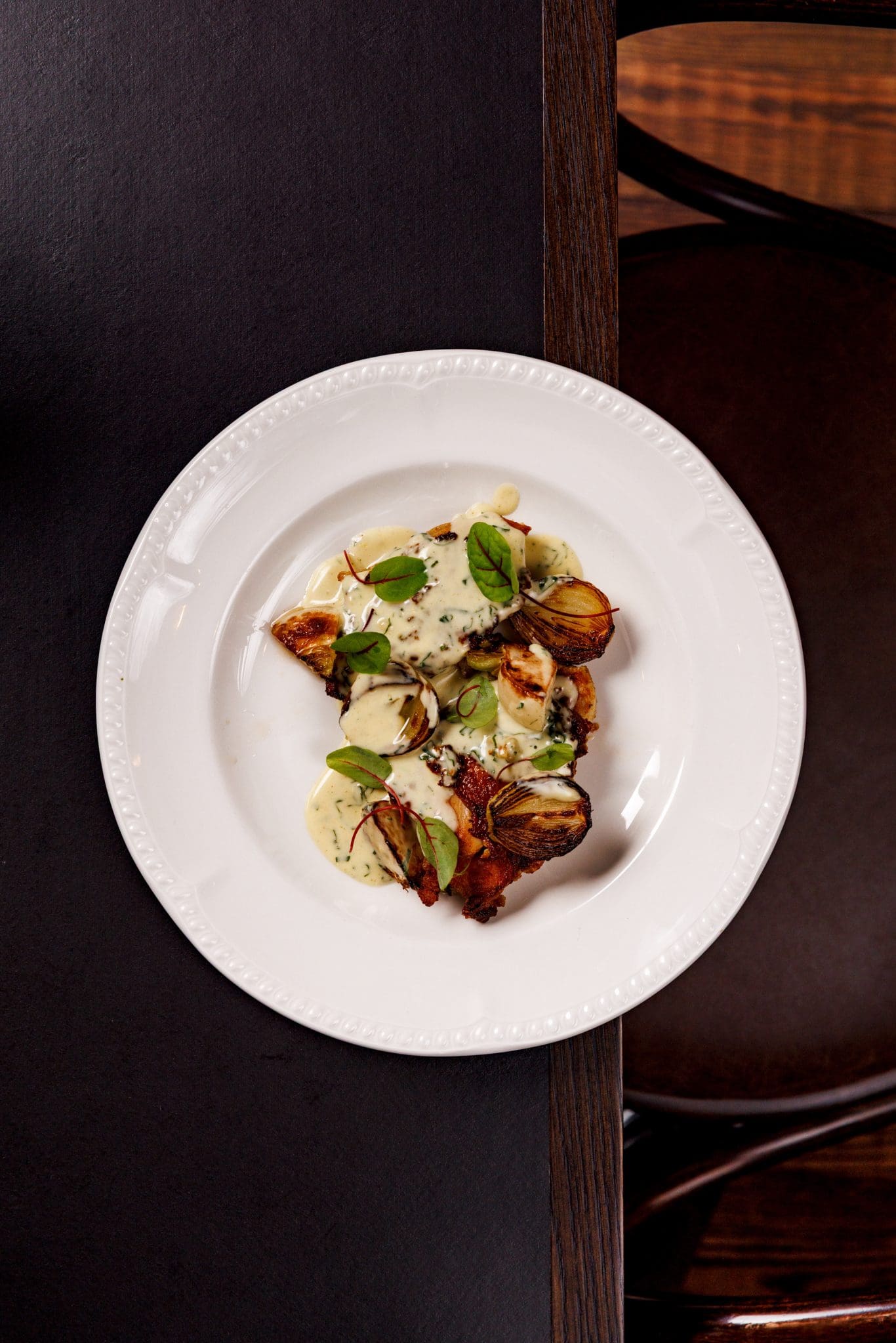 $42Mustard & tarragon béchamel, onions, turnips, thyme