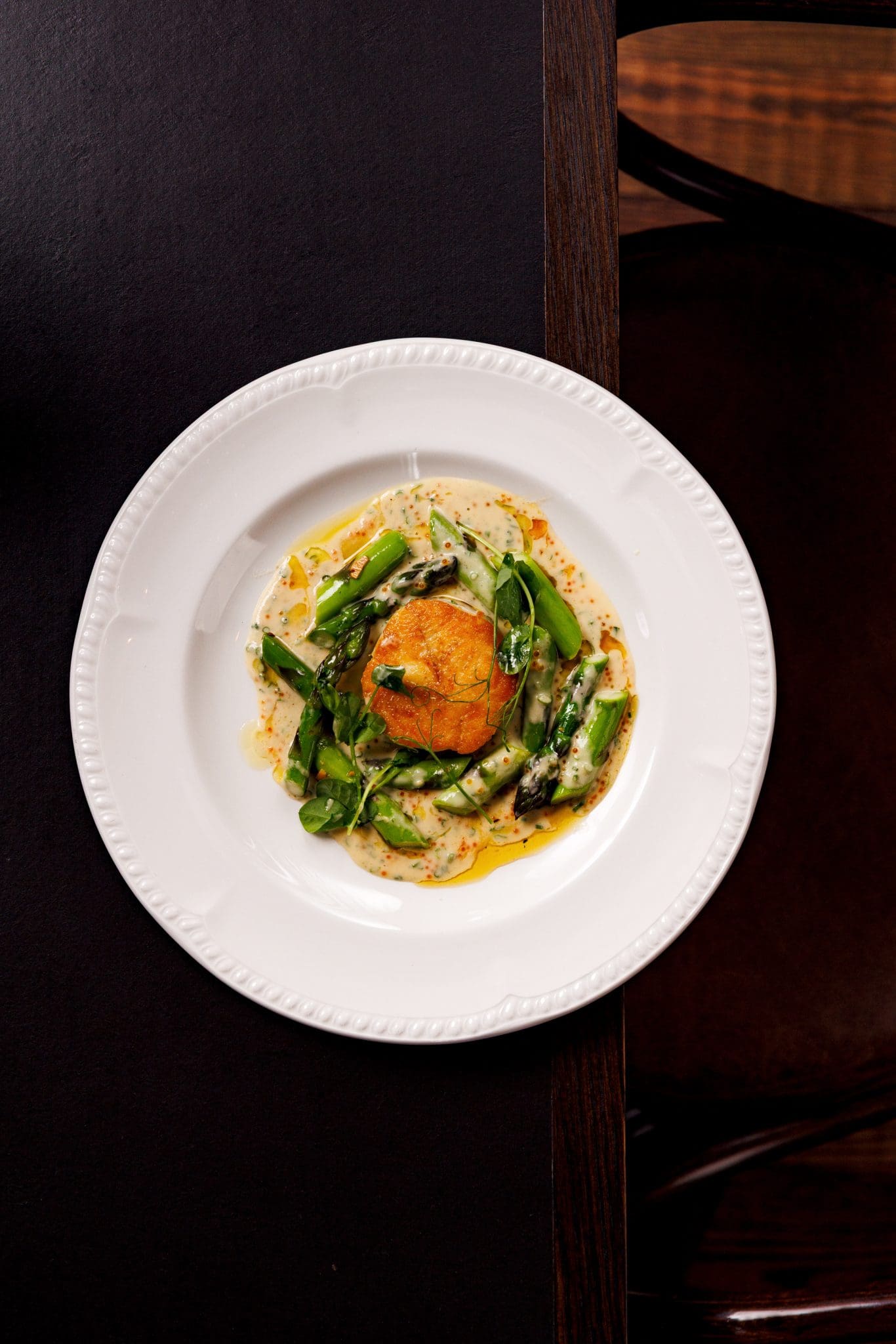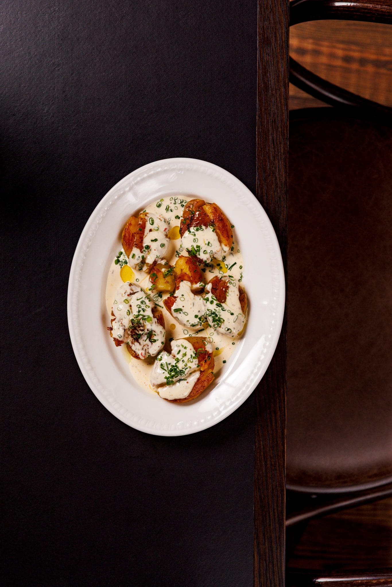 $51Pommes dauphine, chard, anchovy dressing, lamb jus